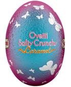 Oeuf de Pâque au chocolat au lait fourrée à la crème au beurre brun clair, caramel salé et éclats de caramel.