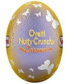 oeuf de pâque au chocolat au lait avec du praliné noisettes et des éclats de caramel.