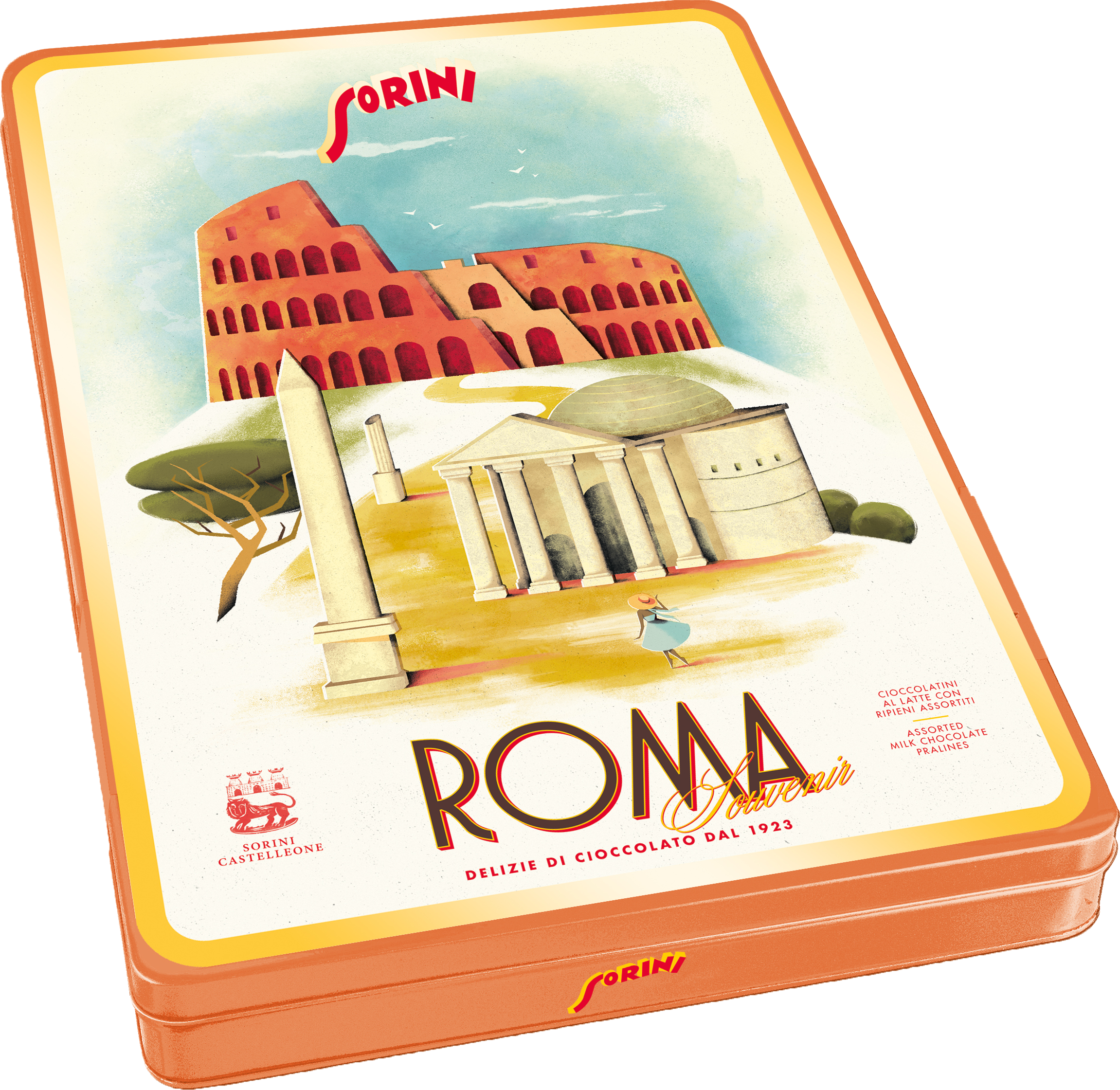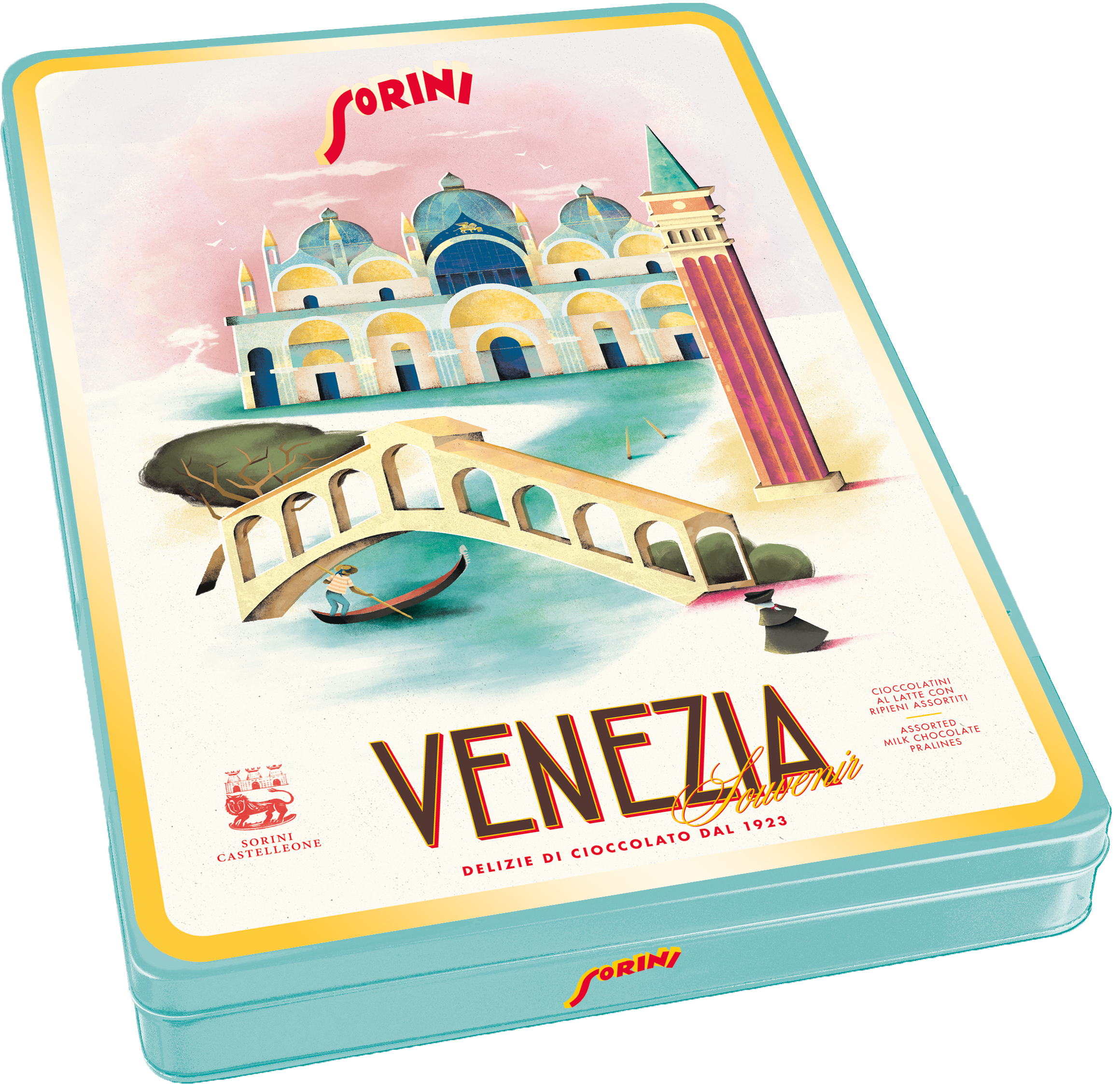 Boîtes métalliques remplies de 3 sortes de pralines au chocolat au lait fourrées à la crème blanche, aux noisettes et au cacao
