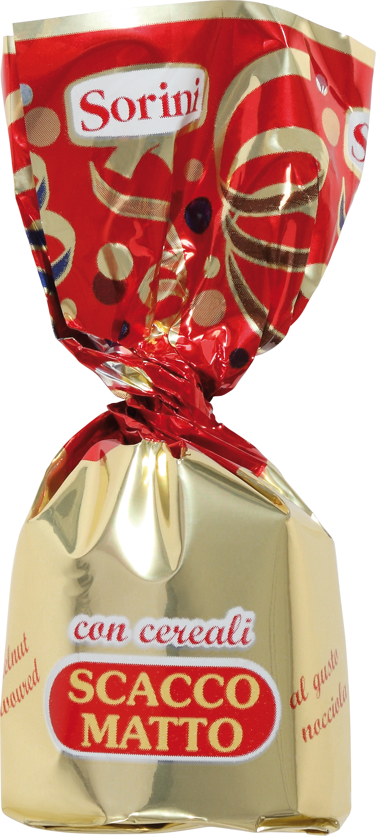 Une praline au chocolat au lait, fourrée au praliné noisettes et riz soufflé