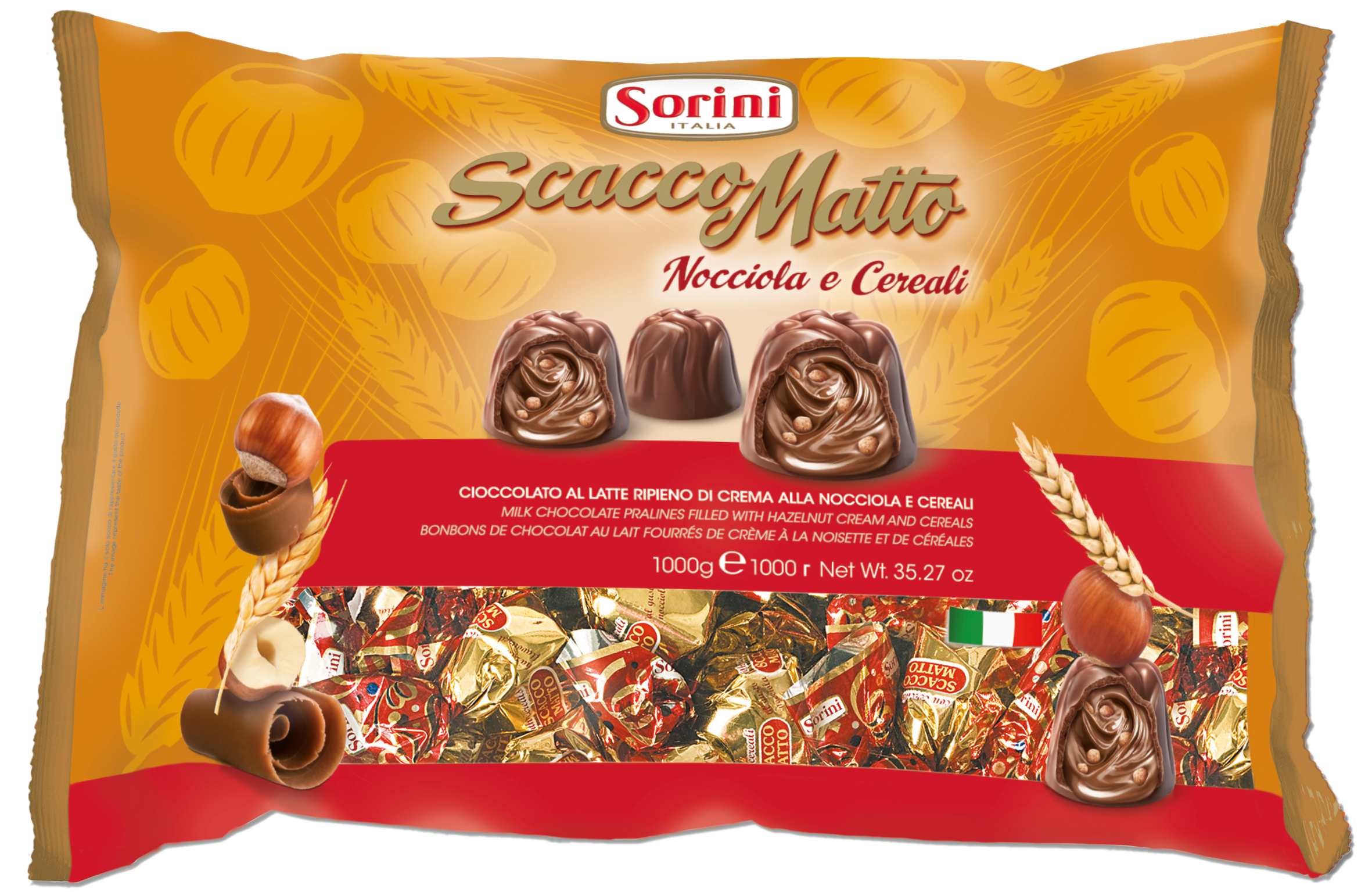 Une praline au chocolat au lait, fourrée au praliné noisettes et riz soufflé.